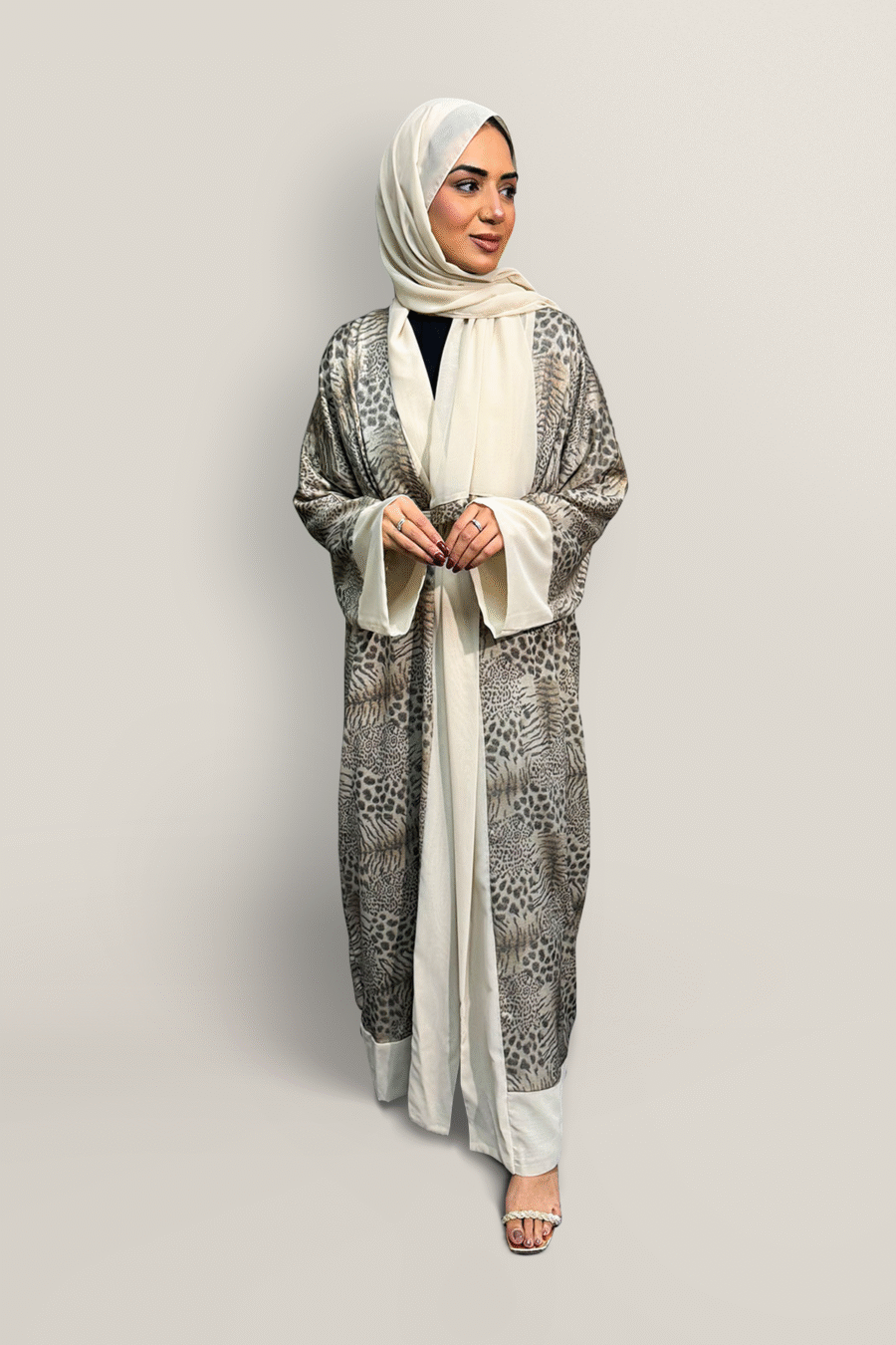 Leopard print abaya | Cream