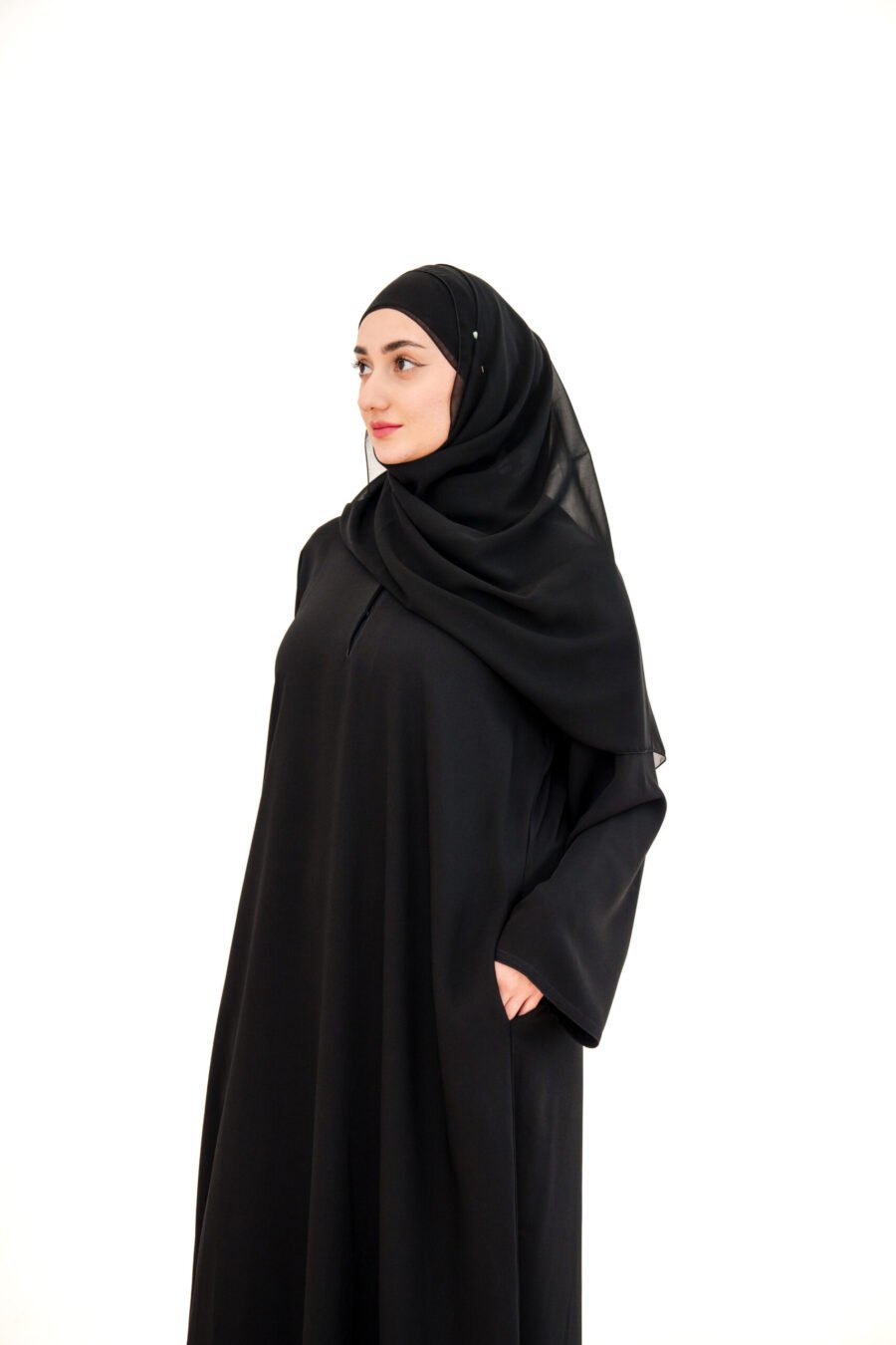 Perfect for daily wear, this abaya is easy to style. Whether you’re at work, running errands, or out with friends. Finished with side pockets and a matching chiffon hijab for a clean, polished look.